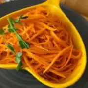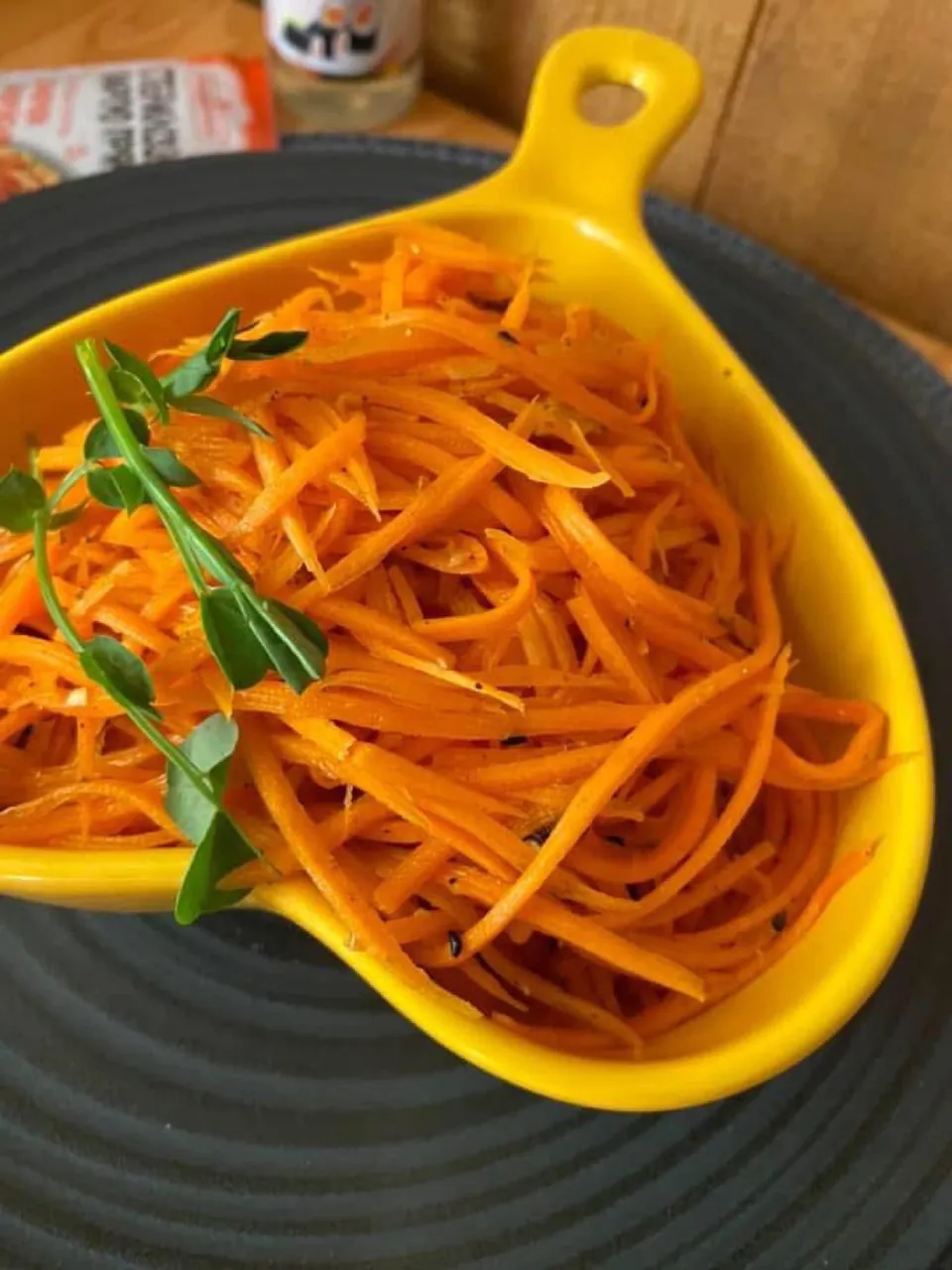 Parut wortel tipis-tipis.Tambahkan garam, gula, ketumbar, dan merica – aduk rata dan haluskan sedikit dengan tangan.Di tempat terpisah, tumis bawang bombay cincang halus hingga berwarna cokelat keemasan. Tuang minyak panas